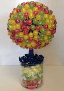 sweet trees for a wedding in Chester. The bride and groom had chosen to have multi trees. The top of the was a huge ball of thousands of sweets at sat on a long stem which we dressed in beautiful white ribbon and organza bows. We planted the tress in long glass vases filled with sweets. They looked so elegent sitting in the wedding reception room of a beautiful castle. we managed to do all this and get it delivered by friday afternoon.